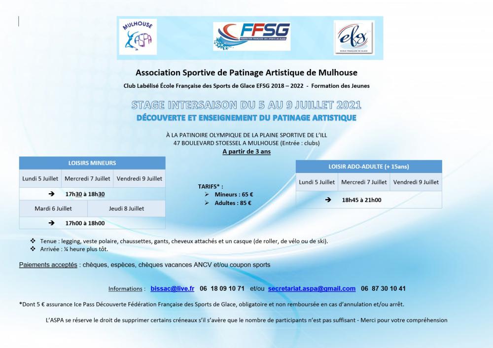 L'ASPA a le plaisir de vous proposer un stage intersaison qui se déroulera sur la semaine